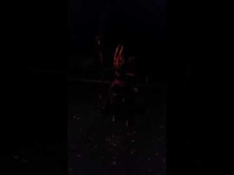 The mask is like a cross between a Jack-O-Lantern and a deer spirit. His patchwork cloak is lined with an entire black satin king-size bed sheet, and has clusters of branches growing from the back. He reaches for you with gloves that have fibrous vegetable fingers. His is the regal, terrifying face of autumn.